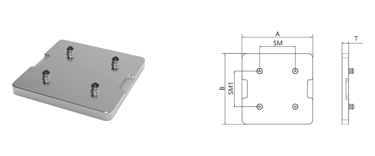 - Dört üniteli sıfır konumlandırıcı taban plakası için uygun